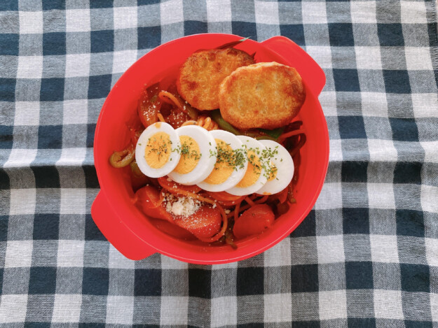 スパゲッティは、レンジで茹でるとラクなので、こちらを使用して、レンジで茹でています。